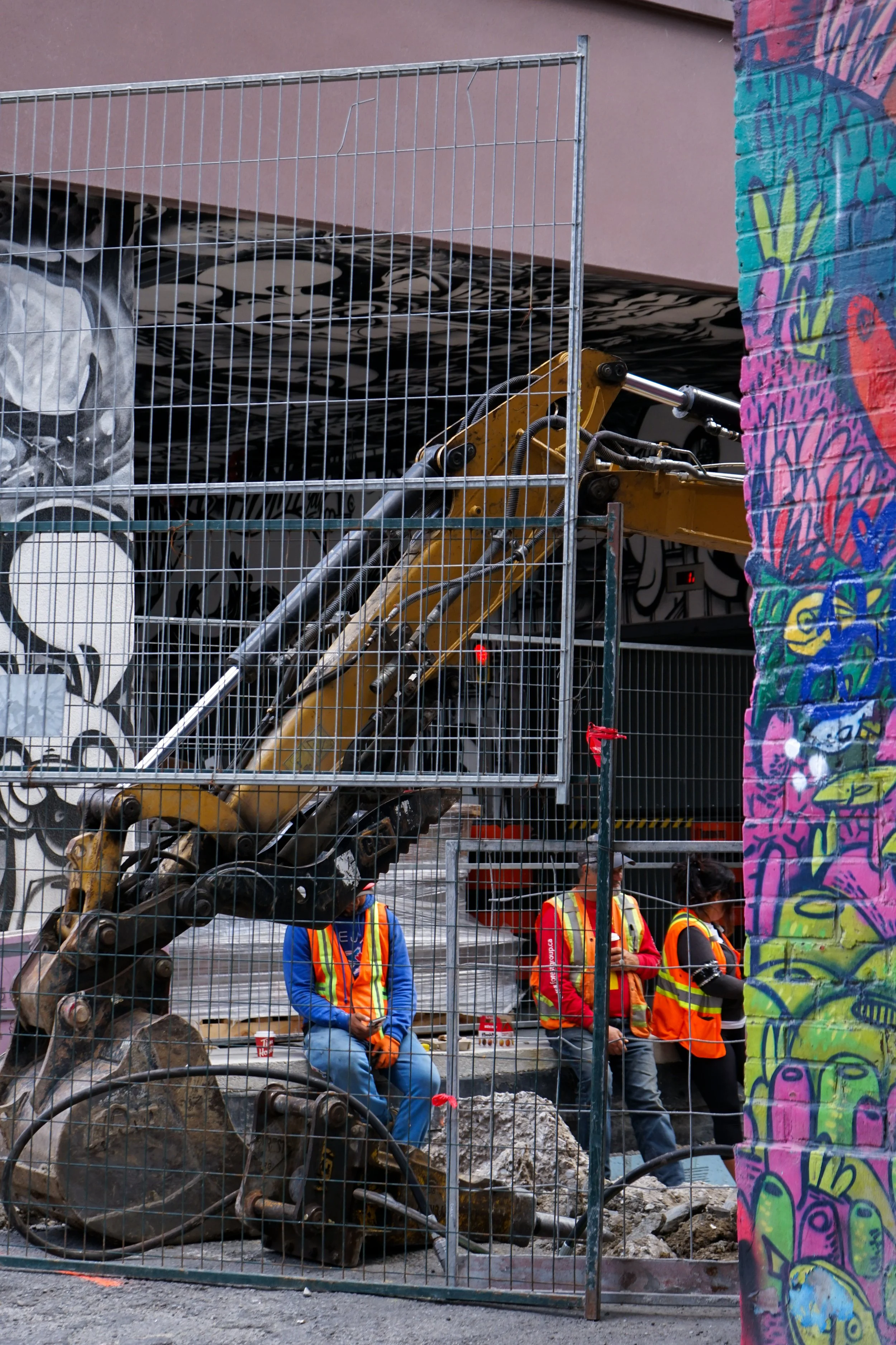 Ihre Erscheinung – das Gerüst, das Material, die Absperrungen – unterscheidet sich von Land zu Land. Ebenso der Rhythmus der Arbeitenden, die Geräusche, das Tempo.
